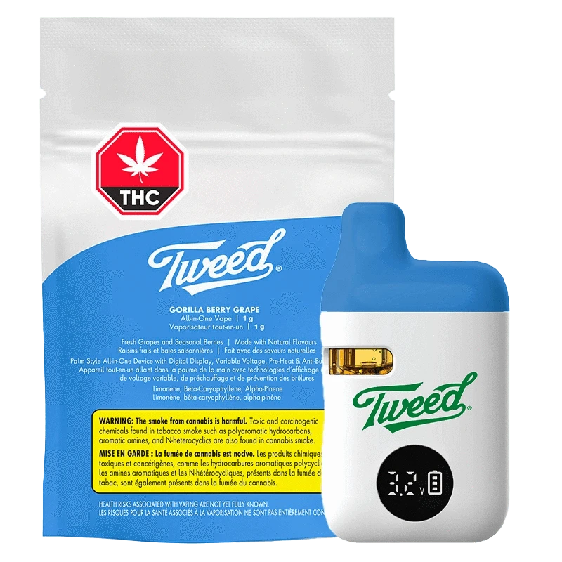 Tweed – Gorilla Berry Grape Liquid Diamonds AIO Disposable Vape (INDICA)